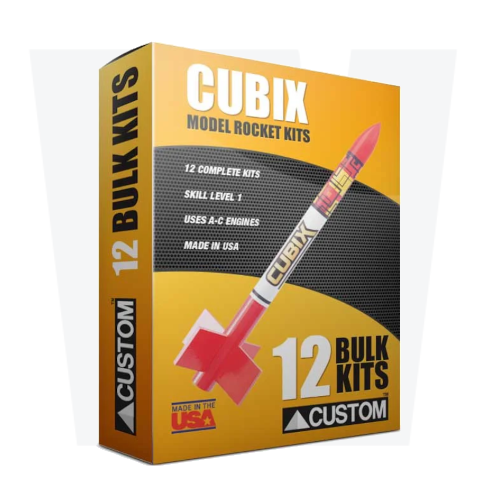 Features balsa nose cone, laser-cut balsa fins, and streamer recovery. Includes large pressure-sensitive decals. Flights of over 1800 feet are possible! Box contains 12 kits.